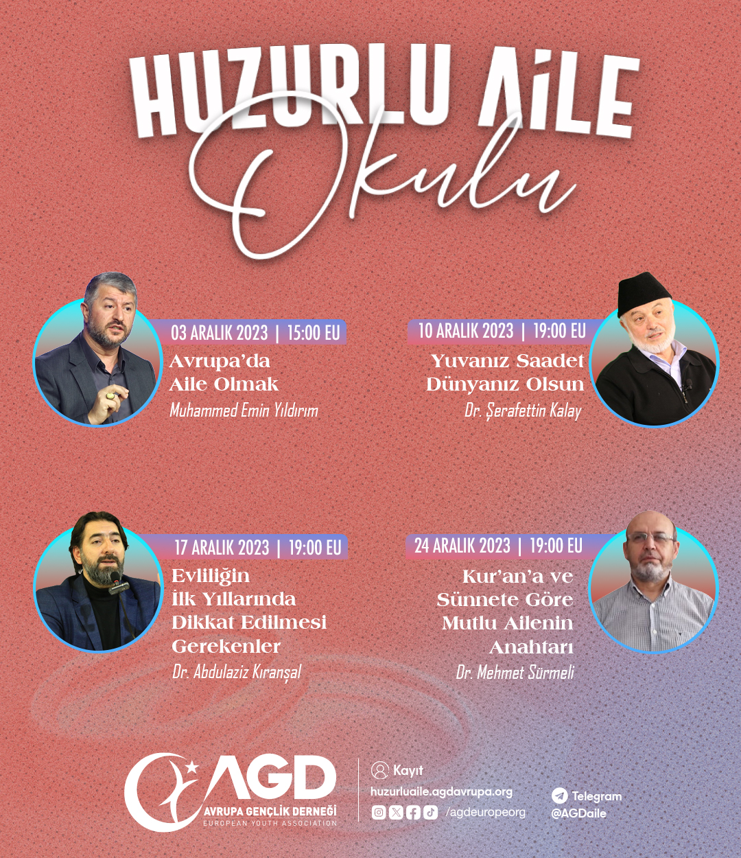 Bu eğitim programına dahil olmak için https://huzurluaile.agdavrupa.org adresinden ön kayıt yapılması gerekmektedir.
